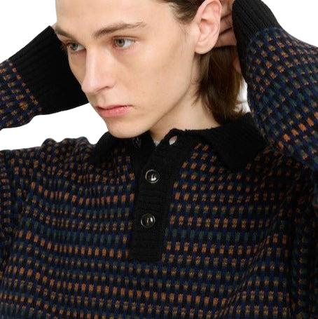 CHECK KNIT CREWNECK - BLACK